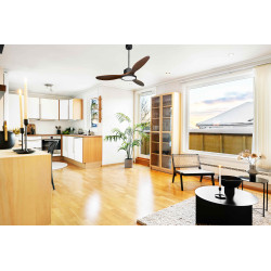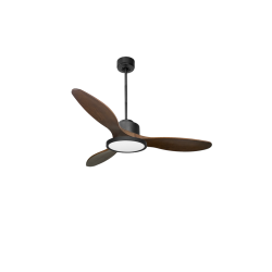 Ventilateur de plafond DC et destratificateur , ici dans sa version avec lumière pales bois foncé et moteur noir DC hyper silence.